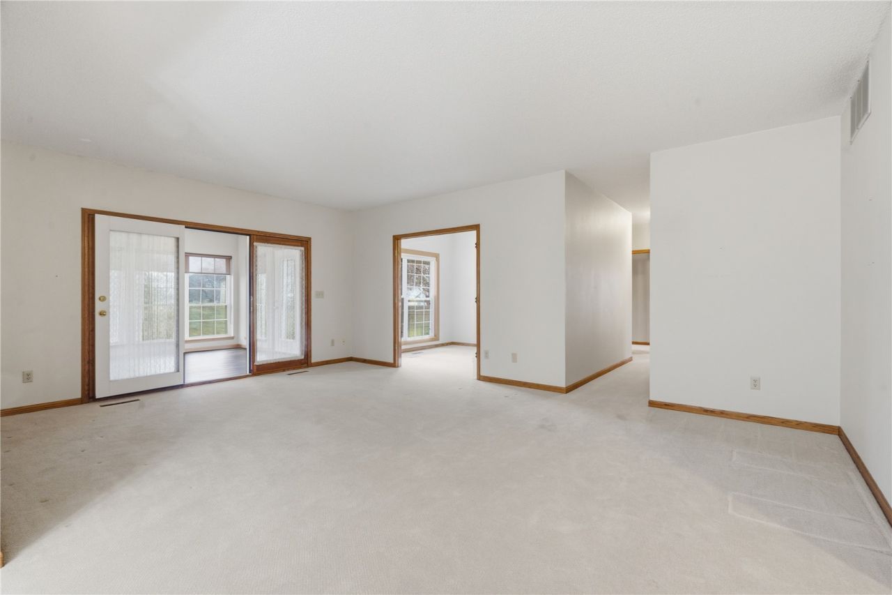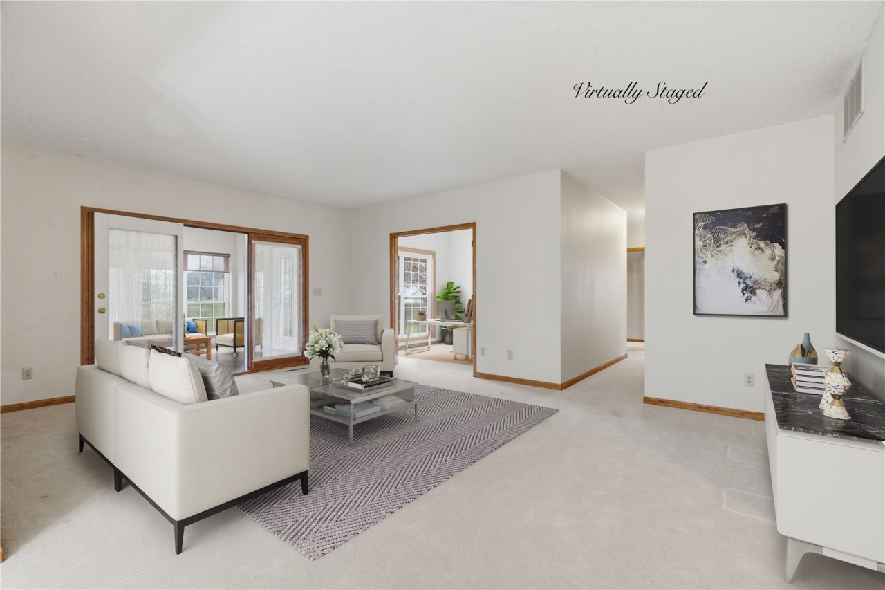 Your wait is over but act fast. This first floor, two bedroom condo in a four-unit building is ready for new owners. Feel safe with a secured entrance and attached 2-car garage. You won't mind downsizing with nearly 1500 sf of living space, as well as a 3-seasons room. Enjoy nature and sunny days from the patio. Once inside, the spacious living room and dining area provide room for entertaining. The bonus room was previously used as a TV room, but would also be perfect for an office, music room or studio. The eat-in kitchen offers a place for casual meals and includes all appliances. Whether you need room for guests or additional family, the second bedroom accommodates any bed-size and has a double-door closet, with an adjacent bathroom. The large primary bedroom suite features an ensuite bath and walk-in closet. In-unit laundry/mechanical room includes washer and dryer. New carpet in 2026. Convenient NE location on cul-de-sac. No pets or rentals. $500 new owner start-up fee. Condo is vacant with some photos virtually staged. Trustee is related to agent team member.